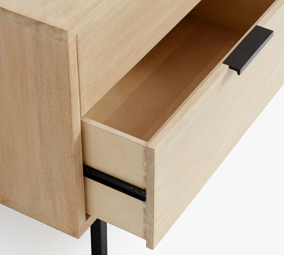 - Drawers feature telescopic metal glides, which ensure smooth motion. Sturdy half-moon safety stops keep drawers securely in place.