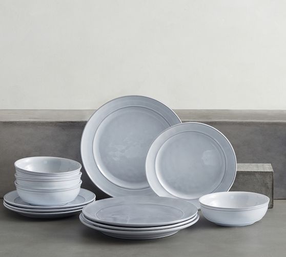 - 12-piece set includes 4 dinner plates, 4 salad plates, and 4 cereal or soup bowls.