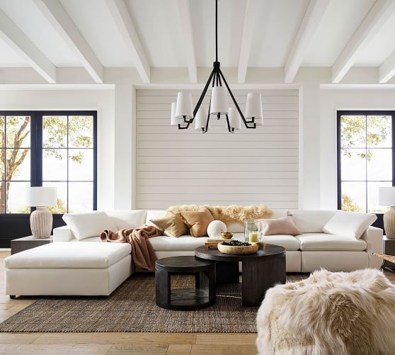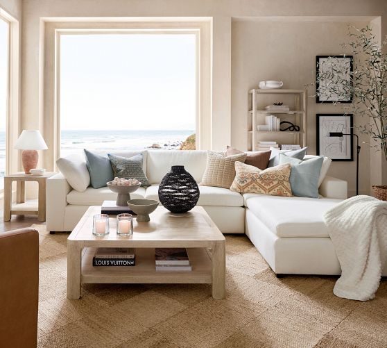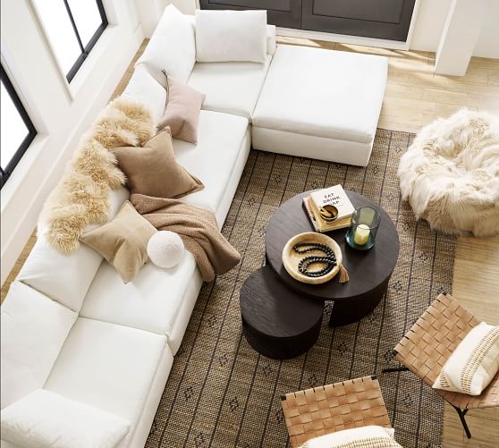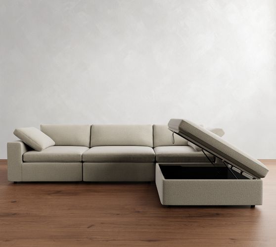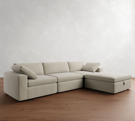 Sectional (129" wide) shown in Denim, Warm White without Storage Ottoman