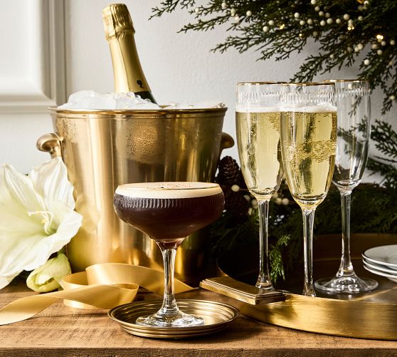 Etched Gold Rim Coupe Glasses - Set of 4