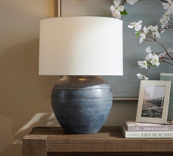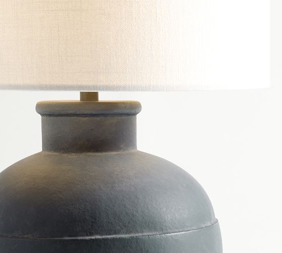 - Black and Indigo lamps include a Gallery Straight Sided Textured Shade in White.