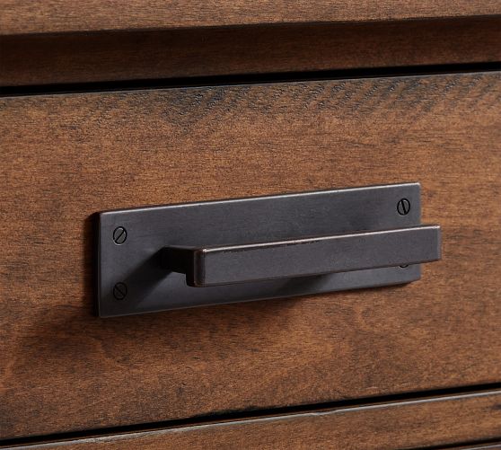 - Drawers feature English dovetail joinery and waxed wooden glides, which ensure smooth motion. Sturdy half-moon safety stops keep drawers securely in place.