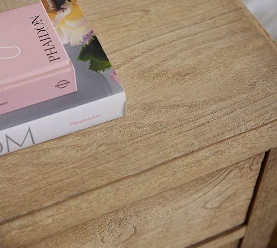 - Crafted of solid Meranti wood, Sungkai veneer and MDF with a Seadrift finish.