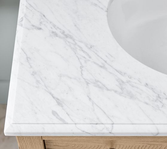 - Vanity top crafted from Italian Carrara Marble.