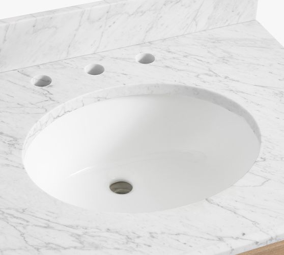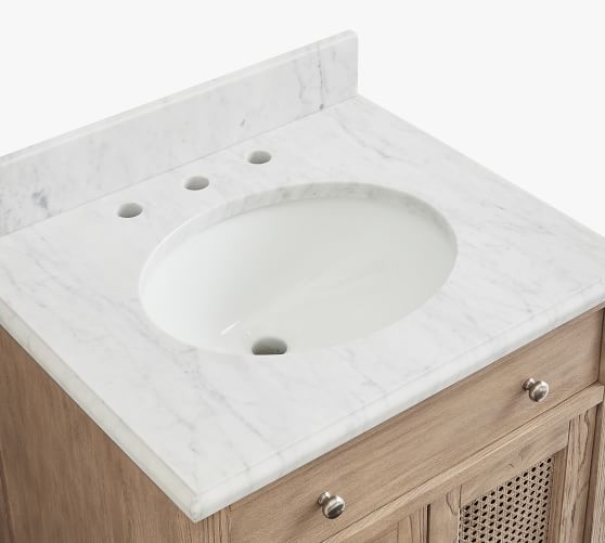 - Vanity top crafted from Italian Carrara Marble.
