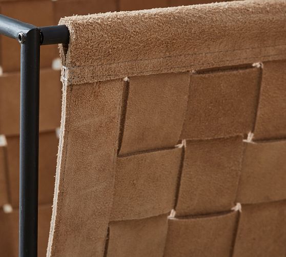 - Magazine holder is crafted from iron and leather and then finished in powder coated black.