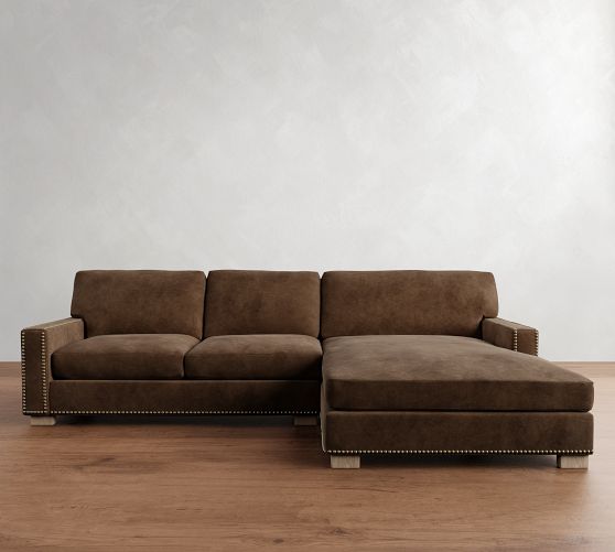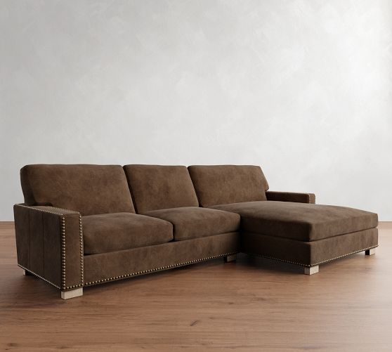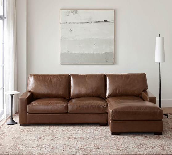 Turner Square Arm Leather Chaise Sectional (105"–129")
