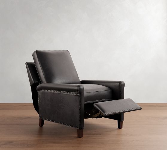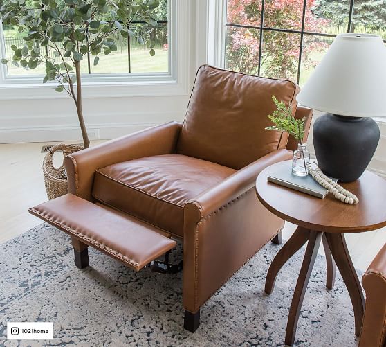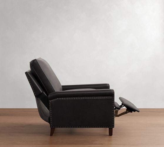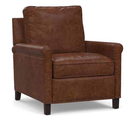 Recliner (38" high) shown in Statesville Caramel with Nailheads and Espresso Legs