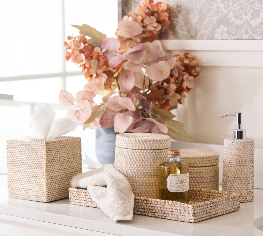 | Tava Handwoven Rattan Soap Pump, White Wash | $51 | $0 |